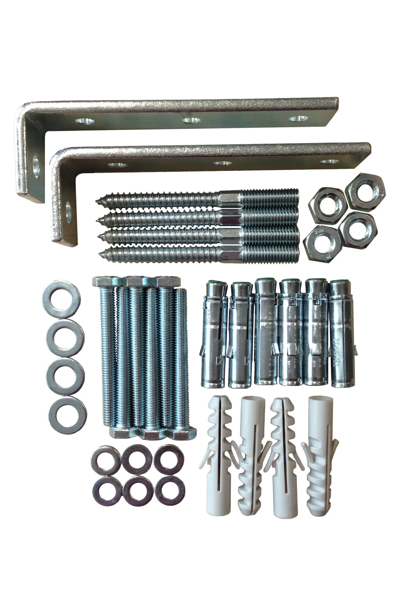 Include diverse viti, rondelle, dadi, staffe in acciaio e tasselli