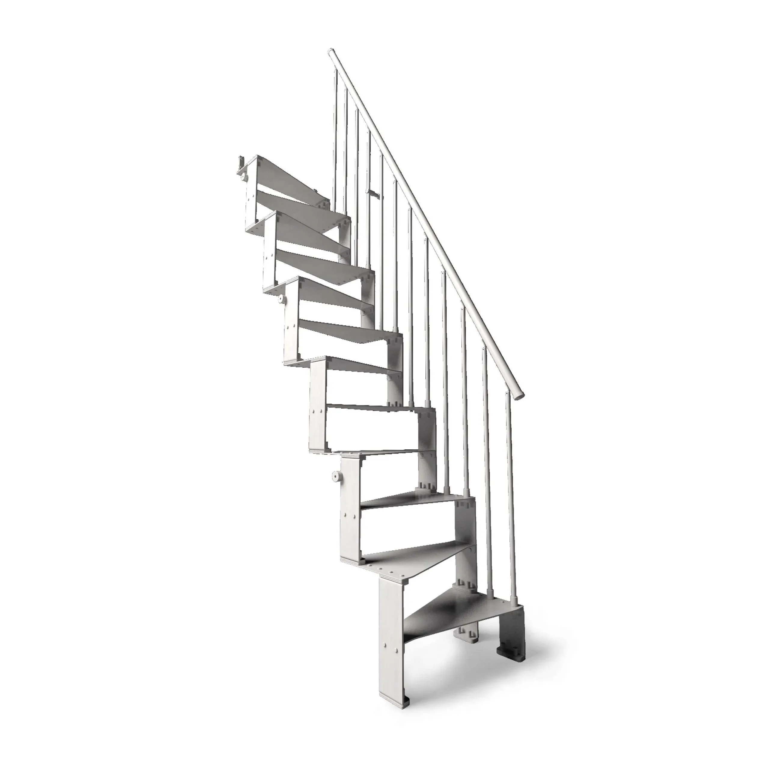 Kit scala rettilinea con 11 gradini in metallo verniciati di forma triangolare a pedata alternata. Struttura modulare in metallo verniciato. Ringhiera a colonne in acciaio verniciato Ø 20 mm e corrimano sempre in metallo Ø 42.4 mm. Colore Bianco.