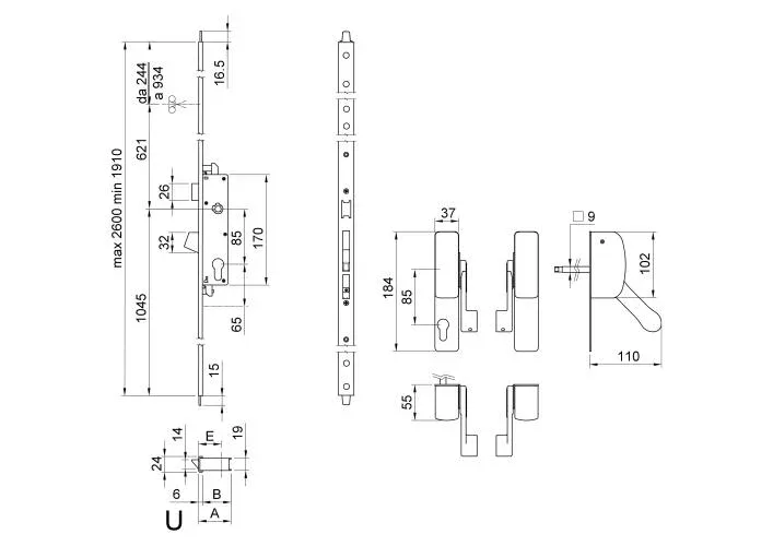 Maniglione antipanico da infilare con tre punti di chiusura. Il meccanismo è a doppio funzionamento per facilitare il posizionamento ambidestro ed è predisposto per il montaggio del comando esterno. Frontale con forma a U. Disponibile in due versioni di entrata: 30 e 35 mm. Per l’anta attiva di porte doppie.