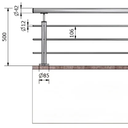Questo montante viene solitamente impiegato per rialzare affacci troppo bassi. E’ disponibile in diverse altezze che vanno da 200 a 500 mm., con e senza travese. Realizzato in acciaio inossidabile AISI 304 SATINATO e consigliato per istallazioni interne. Può essere realizzato anche con altezze su misura.