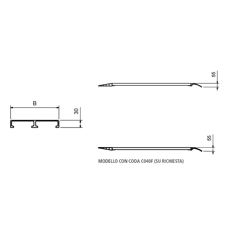 | Modello | Codice Articolo | Passo 500 mm | Passo 750 mm | Passo 1000 mm | Lunghezza mm | Larghezza esterna B mm | Peso alla coppia kg |
