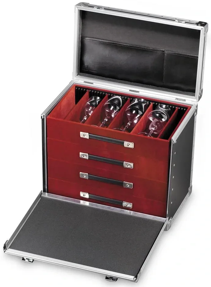 In abs nero con finitura antigraffio e profilati in alluminio anodizzato, adatto a campionario pesante e delicato come cristalli, porcellane, bigiotteria, ecc.L’ apertura a ribalta frontale permette una visione completa e un accesso pratico al contenuto interno: 4 cassetti in velluto rosso o nero h cm 8, organizzati al loro interno con scomparti regolabili (art. CS/80D) oppure vuoti (art. CS/80).Maniglia anatomica, serrature con chiusura a chiave e piedini di appoggio in gomma.Disponibile anche in versione trolley art. 301/CS/80D/CR104* Realizzabili anche con dimensioni personalizzate.